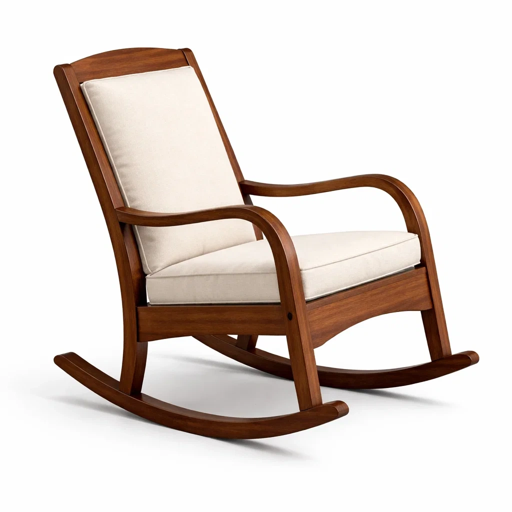 Der Stuhl bietet keine Einstellungsoptionen und dient als Entspannungsschaukelstuhl.