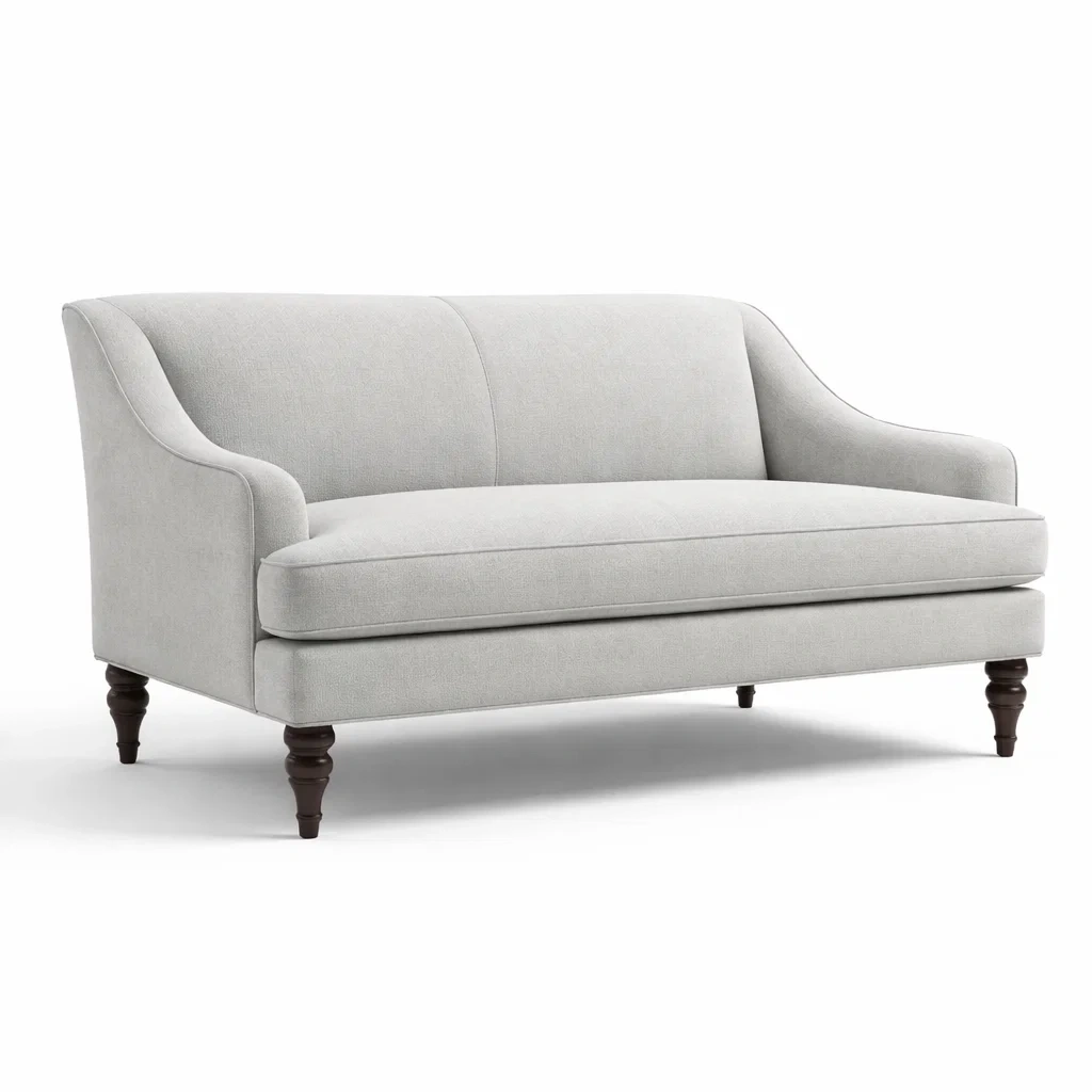 Dieses 2-Sitzer Sofa verfügt über einen Bezug aus 100% Leinen. Die Polsterung besteht aus hochdichtem Schaumstoff, der Komfort und Unterstützung bietet. Die Beine sind aus lackiertem Holz gefertigt und sorgen für Stabilität. Es hat geschwungene Armlehnen und abnehmbare Sitzkissen.